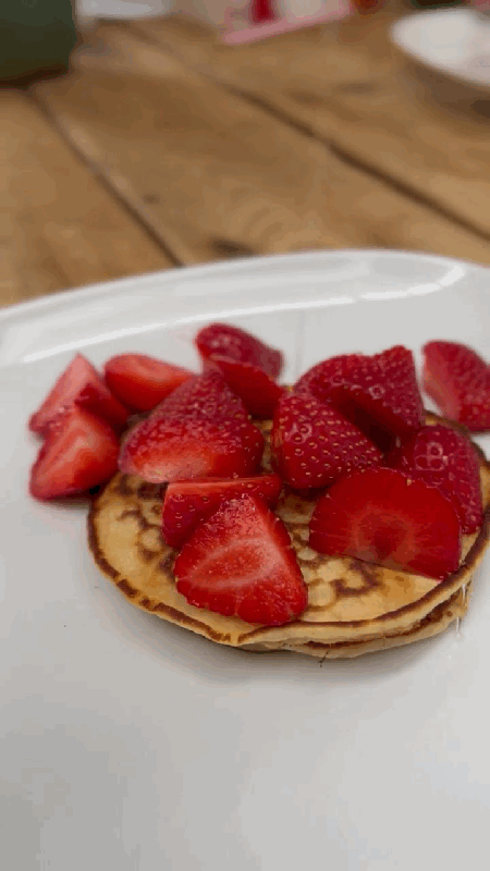 Dien op met de aardbeien en een beetje honing. Eet smakelijk!